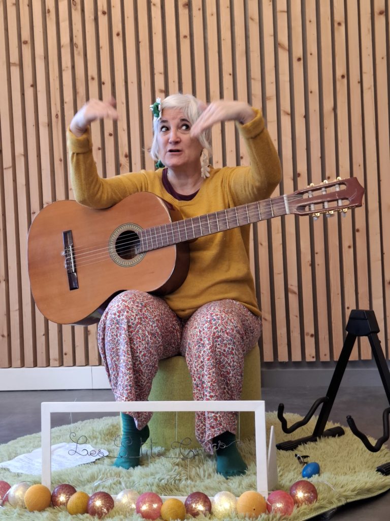 Marie TRUC vous propose des mini-concert guitare et chant pour le très jeune public de 0 à 3 ans et les 3-6 ans .Plonger avec douceur et délectation dans un bain musical rempli de chansons et de comptines. Des Mini-Concerts tout terrain dans vos structures; chez vous ou en extérieur. Venez profiter de ces bulles musicales: Venez chanter avec elle !